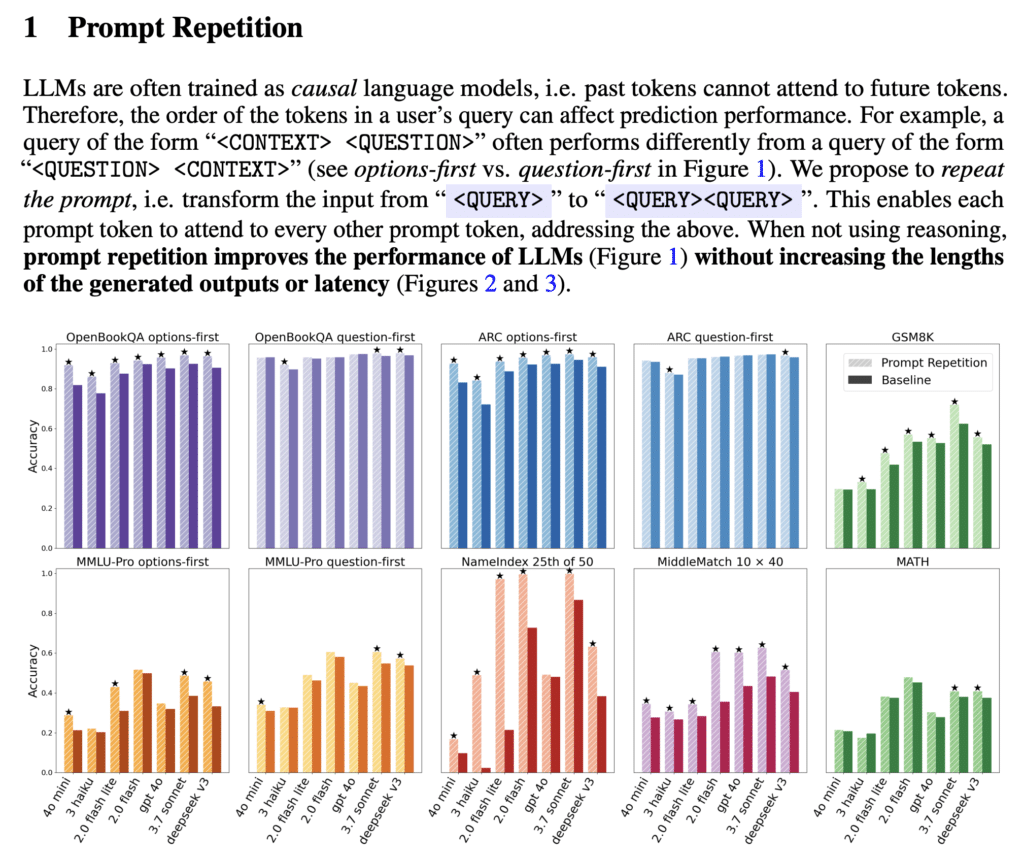 Prompt Repetition Improves Non-Reasoning LLMs According to This Paper